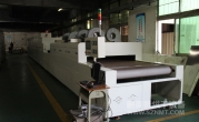 2、外形尺寸(約):總長24500mm*總高1740mm*總寬1890mm,地面到網(wǎng)帶的高度為950-1050mm,爐體內(nèi)進(jìn)料高度為150mm;烘干部分總長14000mm,分7段獨(dú)立控溫(每段4個(gè)測溫?zé)犭娕迹?,每?000mm。冷卻段長4000mm,UV區(qū)2000mm,前后緩沖區(qū)各長500mm,進(jìn)料部分長2000mm,出料部分長1500mm, 爐體前后大梁上方裝有急停開關(guān),共4個(gè)。